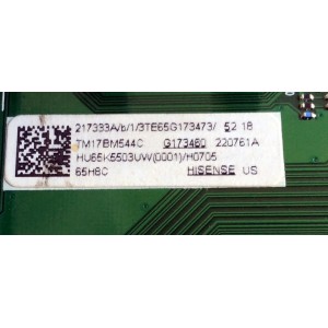 MAIN PARA TV HISENSE / NUMERO DE PARTE 217333 / RSAG7.820.6715/ROH / 220761 / HU65K5503UW(0001) / 217333A / 220761A / PANEL HE650K5U52-TA\S0\GM\ROH 218262 / MODELO 65H8C