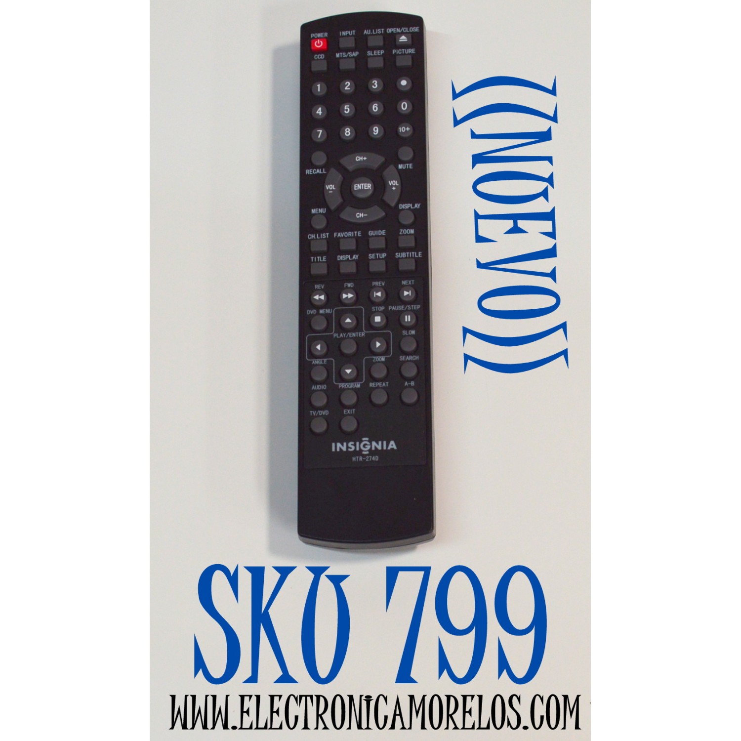 CONTROL REMOTO ORIGINAL NUEVO PARA TV Y DVD INSIGNIA / NUMERO DE PARTE HTR-274D / 0094013898D / VC532237 / HTR-2740 / TV-5620-68 / MODELO NS-LTDVD19
