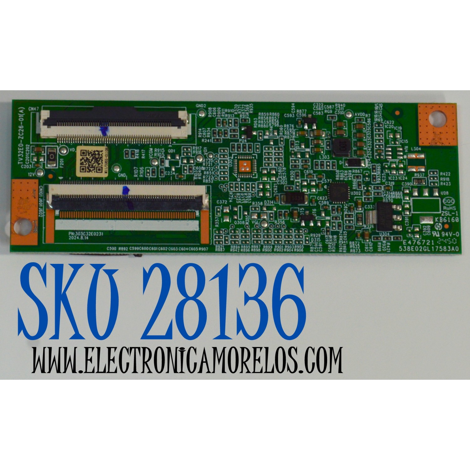T-CON ORIGINAL PARA TV ONN / NUMERO DE PARTE 513C32E0M11 / TV32E0-ZC26-01 (A) / 303C32E0231 / 538E02GL17583A0 / M11/3955-01108 / PANEL HV320WHB-F56 / DISPLAY HV320WHB-F56 REV.4.0 / MODELO 100012589 32"