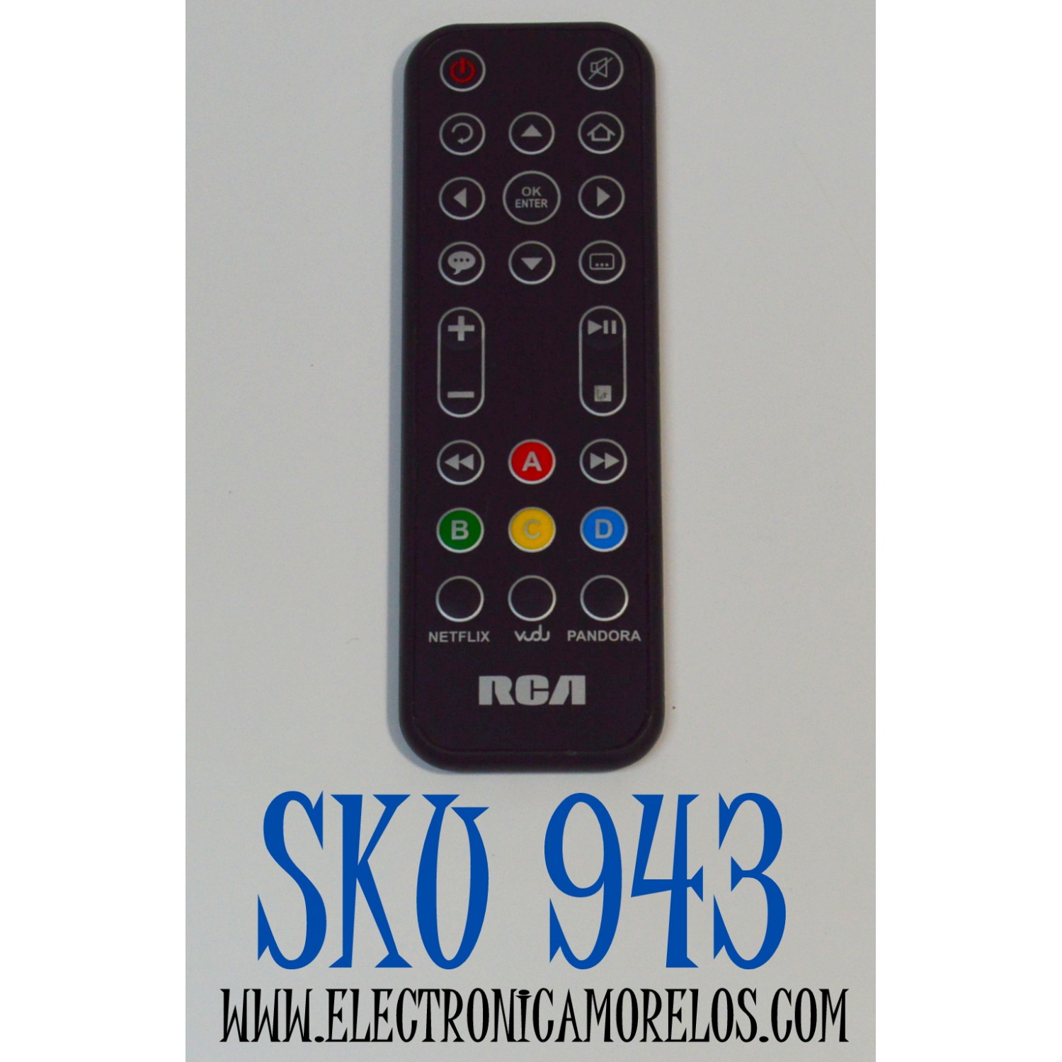 CONTROL REMOTO ORIGINAL RCA / NUMERO DE PARTE RCA 679-4981 / CUENTA CON ACCESO DIRECTO APLICACIONES DE STREAMING NETFLIX / VUDU / PANDORA / COMPATIBLE REPRODUCTOR MULTIMEDIA RCADSB776W / DSB772WE